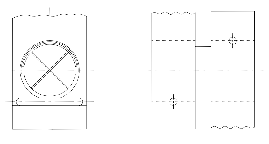 Clamp stresses may be reduced by drilling and slotting as shown by dotted outline.