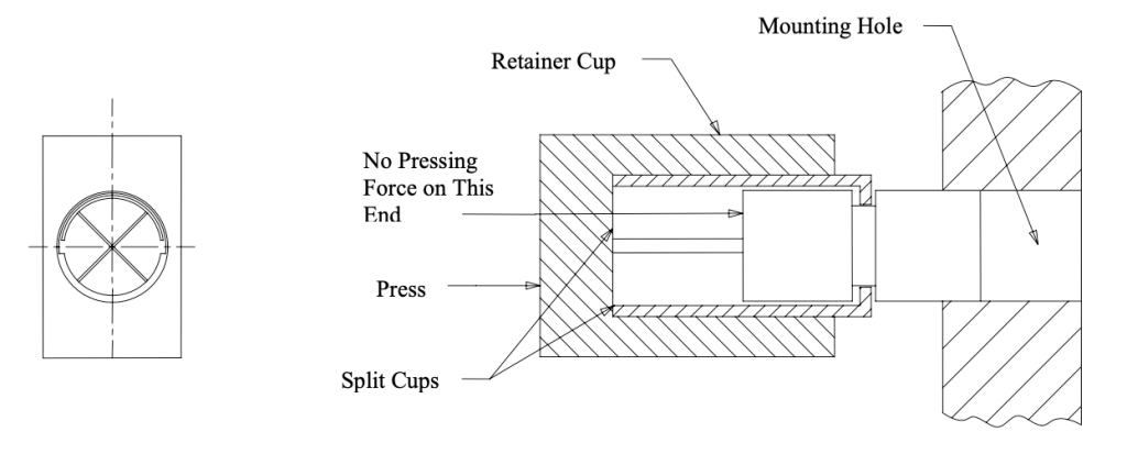 For press fit installations, special tools are required to avoid shearing off of outer sleeve or damaging flexures.